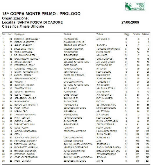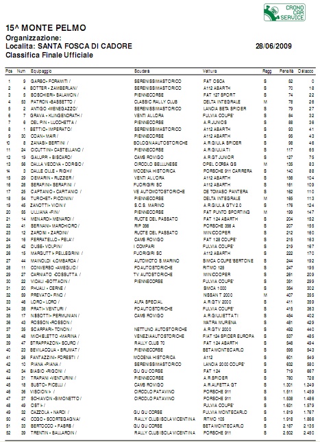LE CLASSIFICHE DELL'EDIZIONE 2009